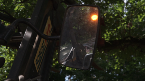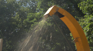a view (2024) is an installation made from 24kg of wood-chips that I transported from Berlin to Tokyo in my luggage. The material originated from an earlier installation titled ‘altitude’ (2024). I brought two modules of the original stage into a nearby German forest and filmed them being processed through a wood-chipper. The machine’s mouth, curtains, and frame resembled the architecture of a proscenium stage.
