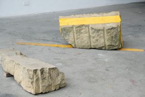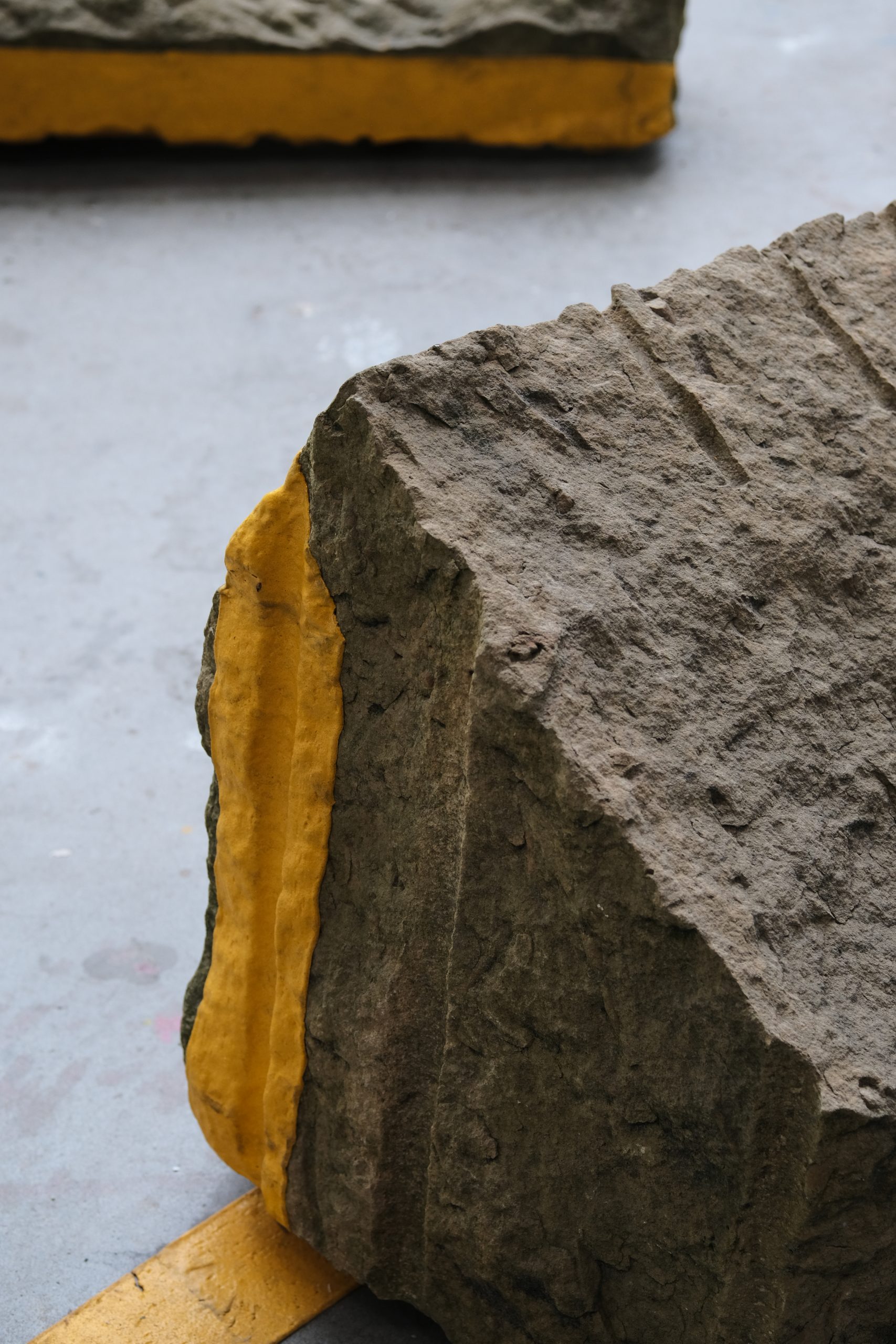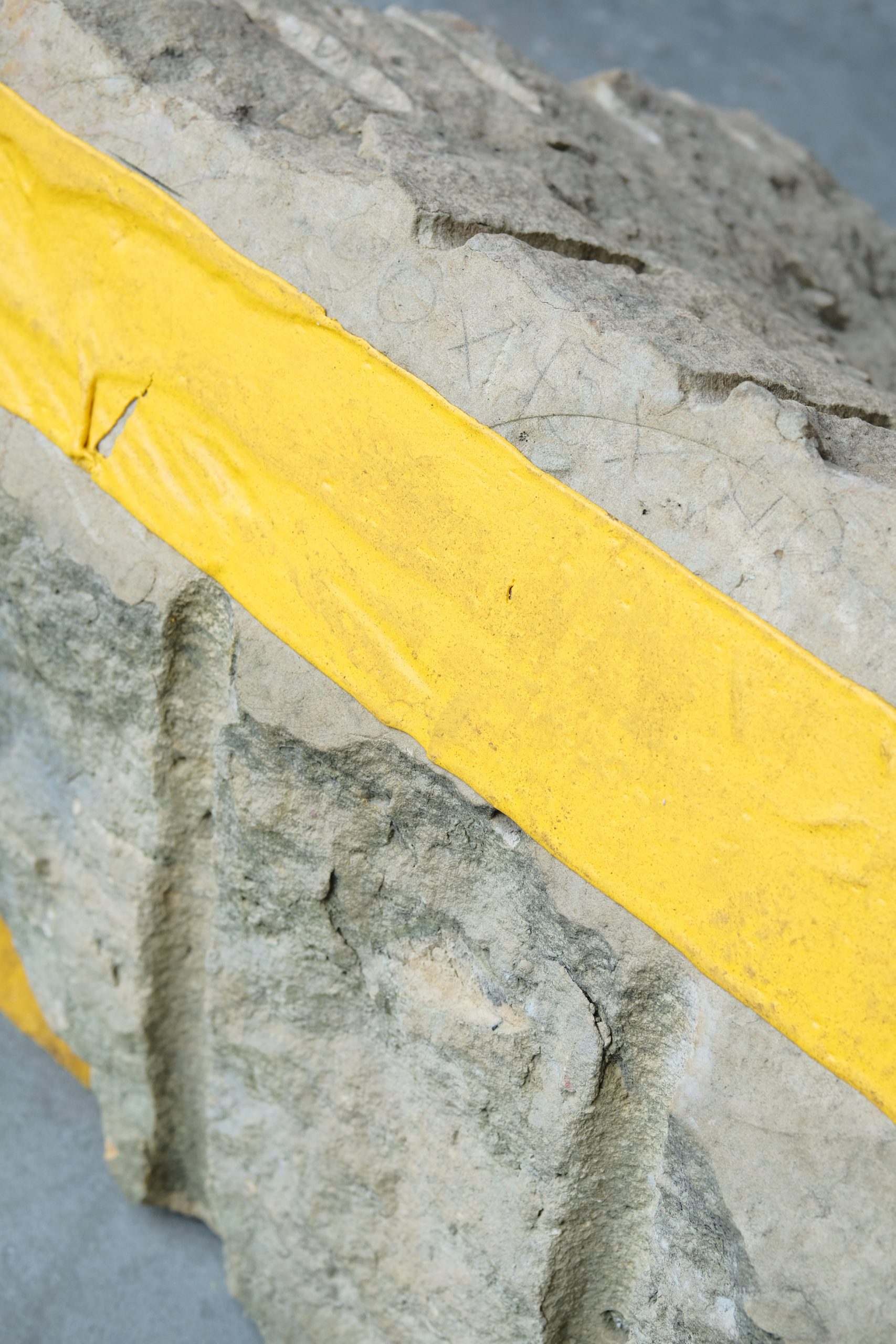 2025. Sandstone, road-markings, pencil-markings. Dimensions variable